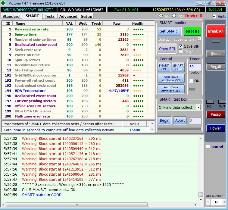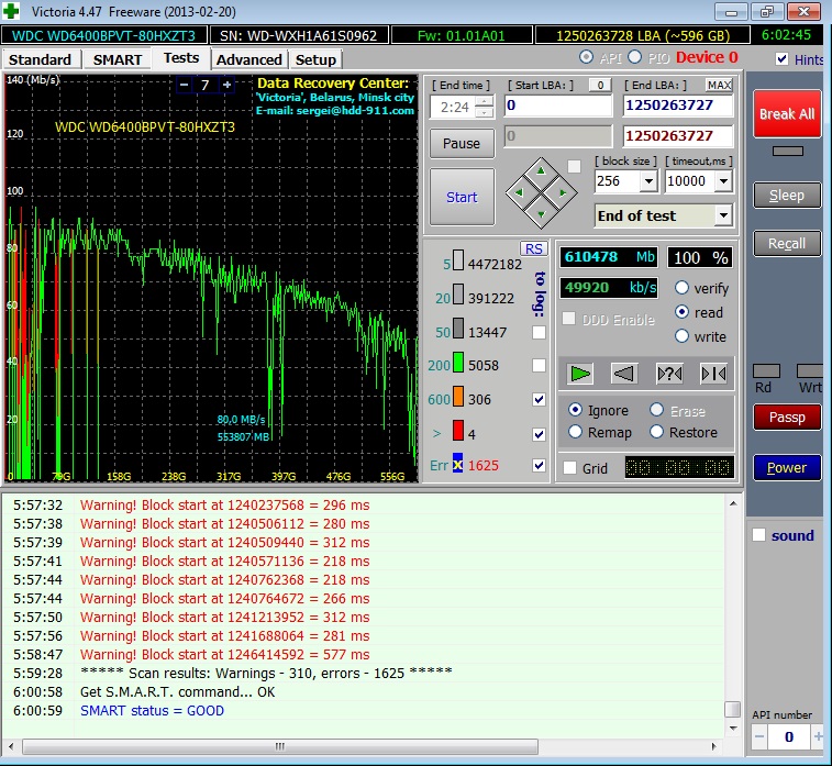 Добрый день! Интересует диагноз. Диск был разбит на два раздела, системный в 150Гб и остаток в 450Гб. Система "внезапно" упала, но вторая часть диска (бывший логический "D") вполне рабочая. На нее удалось поставить windows по новой и доступ ко всей информации есть. Но первые 150Гб никак не форматируются. Можно ли что-то сделать? И какие прогнозы на то, сколько проработает выживший кусок? К сообщению приложены файлы: 1.jpg, 757x697, 257Кb, 2.jpg, 757x697, 258Кb |