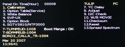 Alexzandr Что за системное меню,может быть сервисное? Сам Самсунг путается, не только я. Ниже соседние строчки из сервис мануала 3-2 How to Access Service Mode 3-2-1 Entering Factory Mode Дальше ссылки только на Factory Mode Добавление от 15.04.2007 13:47: Классный тест M8 Samsung-LE40M86BD (http://www.hdtvtest.co.uk/Samsung-LE40M86BD/) |